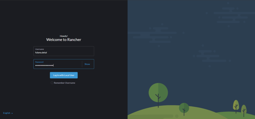 1 – Acesse o Rancher clicando aqui, guarde o link em seus favoritos para acesso facilitado posterior. Utilize seu usuário e senha de costume.